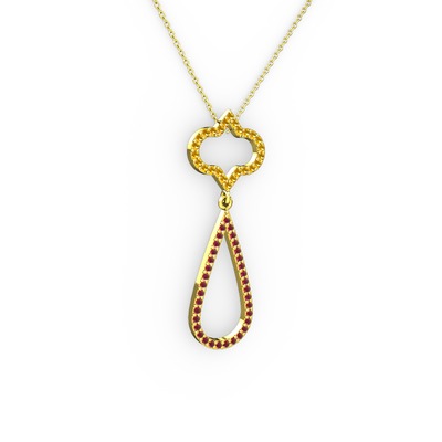 Sitrin ve kök yakut 18 ayar altın kolye (40 cm altın rolo zincir)