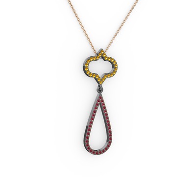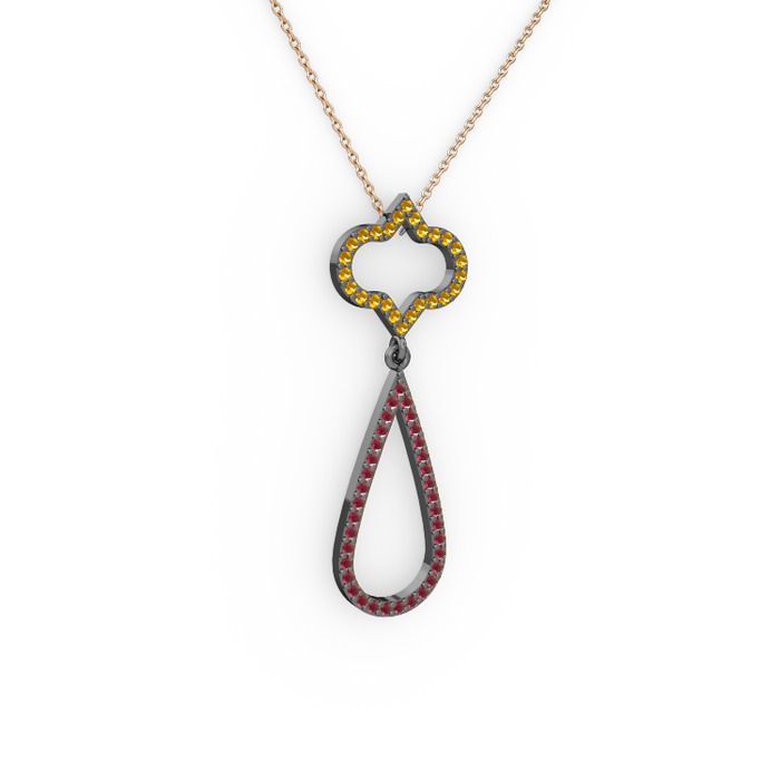 Sitrin ve kök yakut 925 ayar siyah rodyum kaplama gümüş kolye (40 cm rose altın rolo zincir)