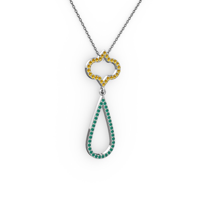Sitrin ve kök zümrüt 14 ayar beyaz altın kolye (40 cm gümüş rolo zincir)