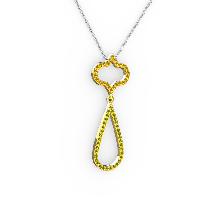 Sitrin ve peridot 8 ayar altın kolye (40 cm beyaz altın rolo zincir)