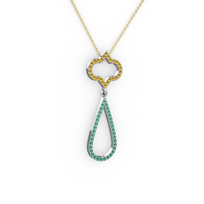 Sitrin ve yeşil kuvars 14 ayar beyaz altın kolye (40 cm gümüş rolo zincir)