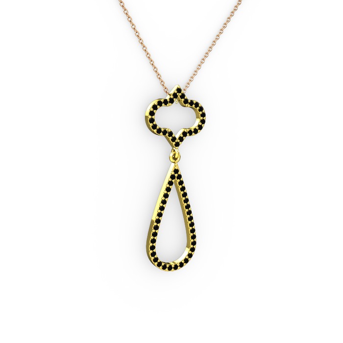 Siyah zirkon 14 ayar altın kolye (40 cm gümüş rolo zincir)