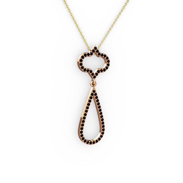 Siyah zirkon 14 ayar rose altın kolye (40 cm altın rolo zincir)