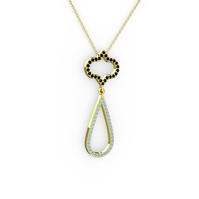 Siyah zirkon ve akuamarin 925 ayar altın kaplama gümüş kolye (40 cm gümüş rolo zincir)