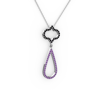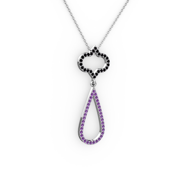 Siyah zirkon ve ametist 18 ayar beyaz altın kolye (40 cm beyaz altın rolo zincir)