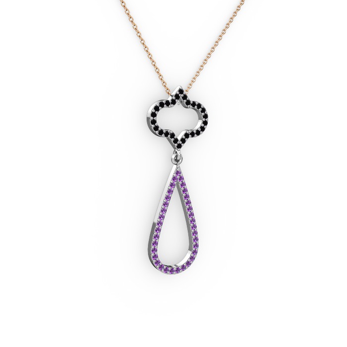 Siyah zirkon ve ametist 18 ayar beyaz altın kolye (40 cm rose altın rolo zincir)