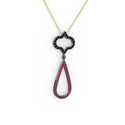 Siyah zirkon ve garnet 925 ayar siyah rodyum kaplama gümüş kolye (40 cm altın rolo zincir)