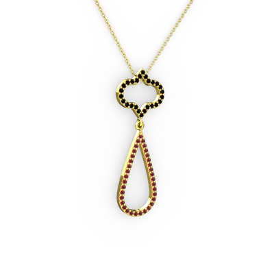 Siyah zirkon ve kök yakut 8 ayar altın kolye (40 cm altın rolo zincir)