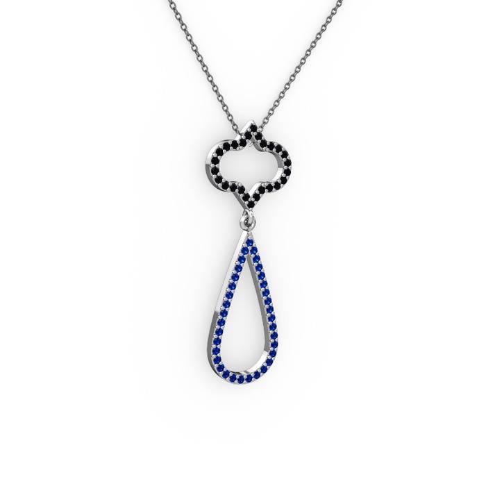 Siyah zirkon ve lab safir 14 ayar beyaz altın kolye (40 cm gümüş rolo zincir)