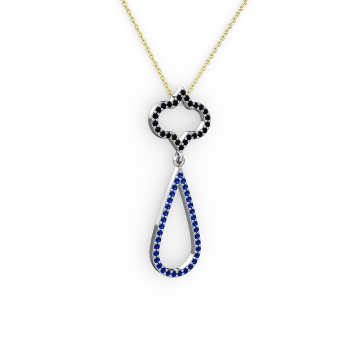 Siyah zirkon ve lab safir 8 ayar beyaz altın kolye (40 cm altın rolo zincir)