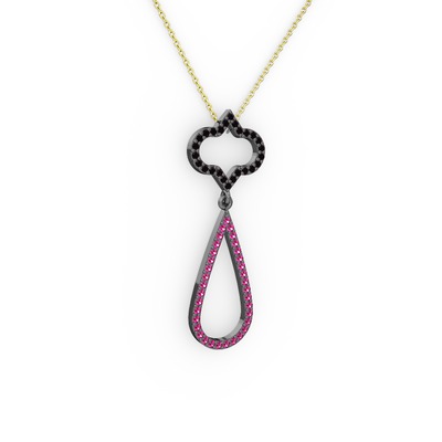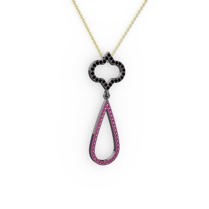 Siyah zirkon ve rodolit garnet 925 ayar siyah rodyum kaplama gümüş kolye (40 cm altın rolo zincir)