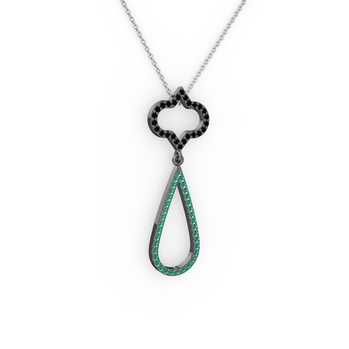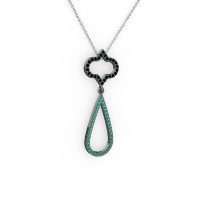Siyah zirkon ve yeşil kuvars 925 ayar siyah rodyum kaplama gümüş kolye (40 cm beyaz altın rolo zincir)