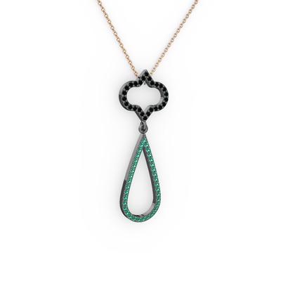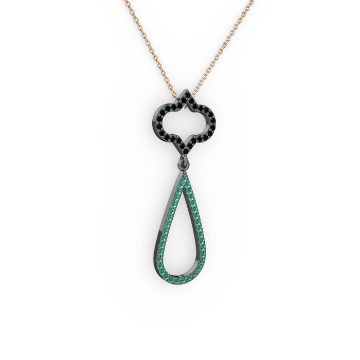 Siyah zirkon ve yeşil kuvars 925 ayar siyah rodyum kaplama gümüş kolye (40 cm rose altın rolo zincir)