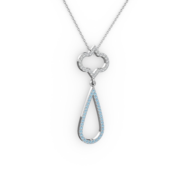 Swarovski ve akuamarin 14 ayar beyaz altın kolye (40 cm gümüş rolo zincir)