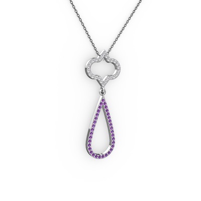Swarovski ve ametist 14 ayar beyaz altın kolye (40 cm gümüş rolo zincir)