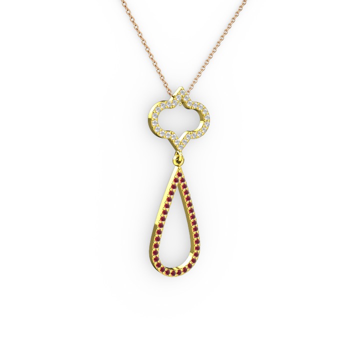 Swarovski ve kök yakut 18 ayar altın kolye (40 cm rose altın rolo zincir)