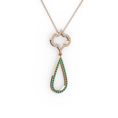 Swarovski ve kök zümrüt 925 ayar rose altın kaplama gümüş kolye (40 cm rose altın rolo zincir)