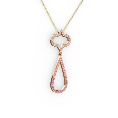 Swarovski ve pembe kuvars 18 ayar rose altın kolye (40 cm altın rolo zincir)