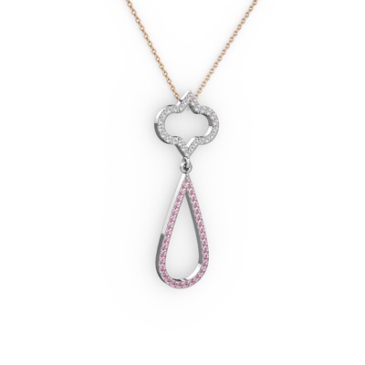 Swarovski ve pembe kuvars 925 ayar gümüş kolye (40 cm gümüş rolo zincir)