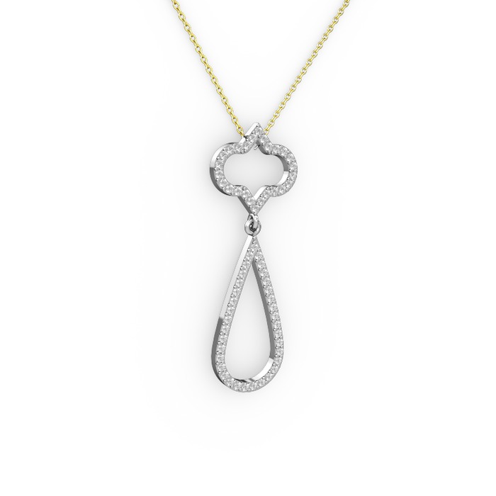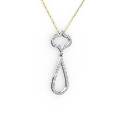 Swarovski ve pırlanta 14 ayar beyaz altın kolye (0.324 karat, 40 cm altın rolo zincir)