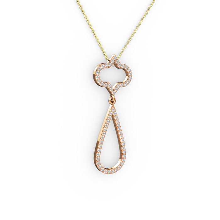 Swarovski ve pırlanta 925 ayar rose altın kaplama gümüş kolye (0.324 karat, 40 cm altın rolo zincir)