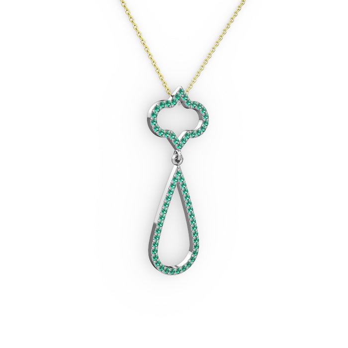 Yeşil kuvars 18 ayar beyaz altın kolye (40 cm altın rolo zincir)