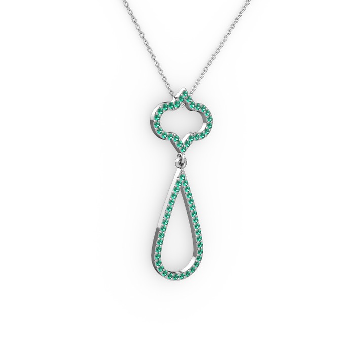Yeşil kuvars 18 ayar beyaz altın kolye (40 cm gümüş rolo zincir)