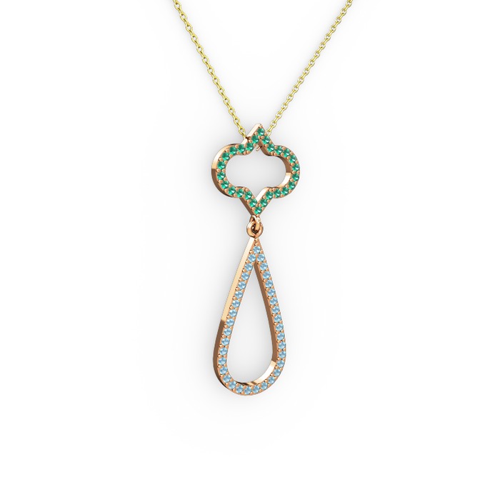 Yeşil kuvars ve akuamarin 14 ayar rose altın kolye (40 cm altın rolo zincir)