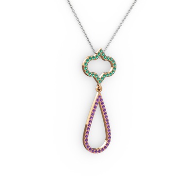 Yeşil kuvars ve ametist 14 ayar rose altın kolye (40 cm beyaz altın rolo zincir)