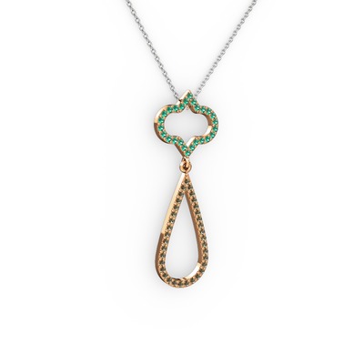 Yeşil kuvars ve dumanlı kuvars 18 ayar rose altın kolye (40 cm gümüş rolo zincir)