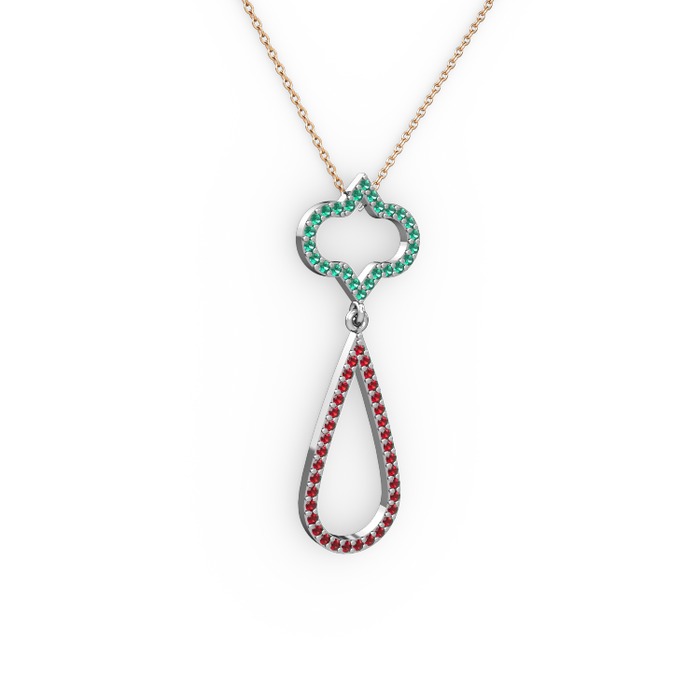 Yeşil kuvars ve garnet 18 ayar beyaz altın kolye (40 cm rose altın rolo zincir)