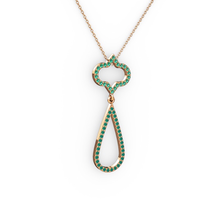 Yeşil kuvars ve kök zümrüt 14 ayar rose altın kolye (40 cm gümüş rolo zincir)