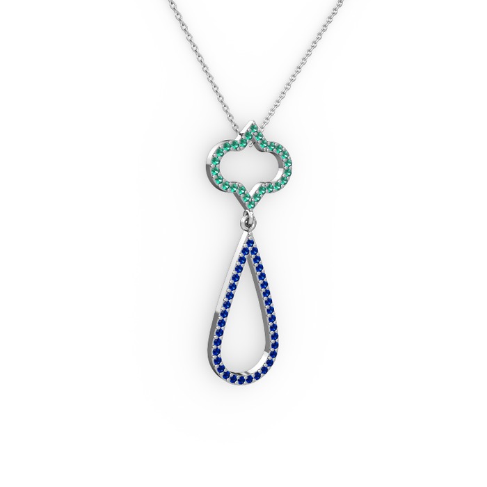 Yeşil kuvars ve lab safir 18 ayar beyaz altın kolye (40 cm beyaz altın rolo zincir)