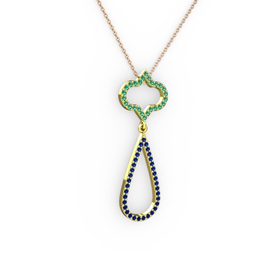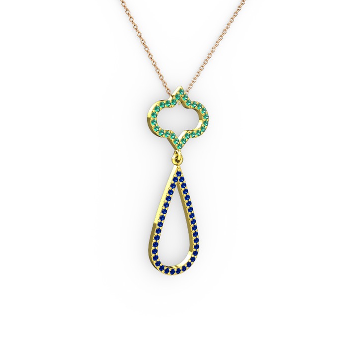 Yeşil kuvars ve lab safir 8 ayar altın kolye (40 cm rose altın rolo zincir)