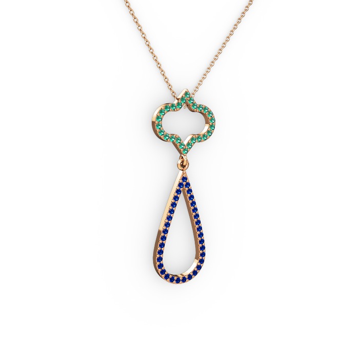 Yeşil kuvars ve lab safir 925 ayar rose altın kaplama gümüş kolye (40 cm rose altın rolo zincir)