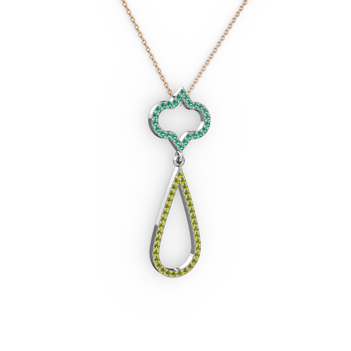 Yeşil kuvars ve peridot 14 ayar beyaz altın kolye (40 cm rose altın rolo zincir)
