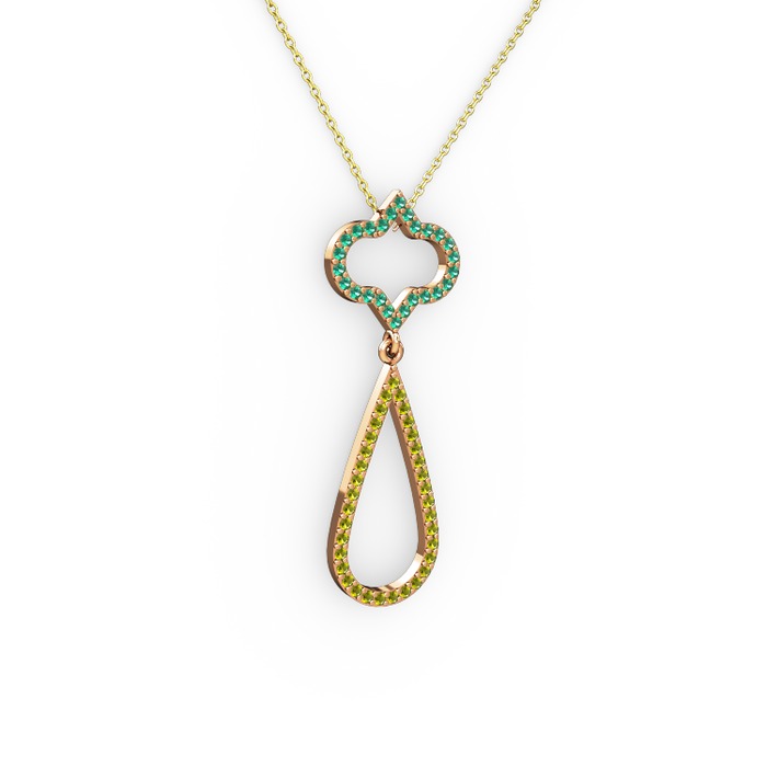 Yeşil kuvars ve peridot 925 ayar rose altın kaplama gümüş kolye (40 cm altın rolo zincir)