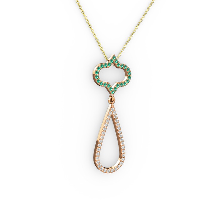 Yeşil kuvars ve pırlanta 18 ayar rose altın kolye (0.324 karat, 40 cm gümüş rolo zincir)