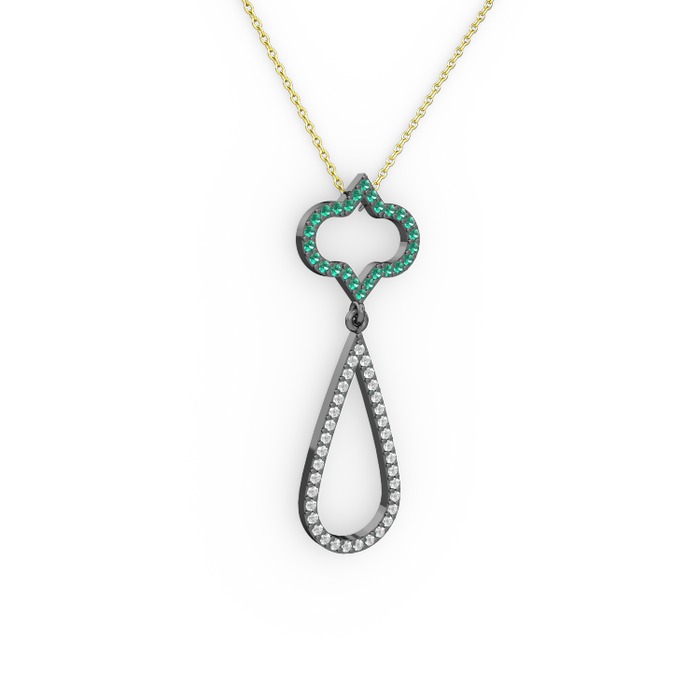 Yeşil kuvars ve pırlanta 925 ayar siyah rodyum kaplama gümüş kolye (0.324 karat, 40 cm altın rolo zincir)