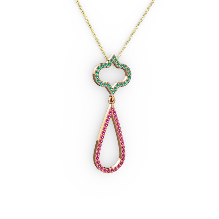 Yeşil kuvars ve rodolit garnet 18 ayar rose altın kolye (40 cm altın rolo zincir)