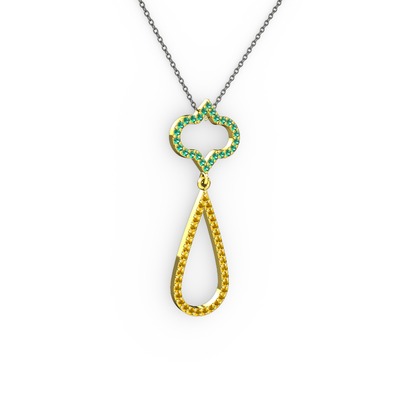 Yeşil kuvars ve sitrin 14 ayar altın kolye (40 cm gümüş rolo zincir)