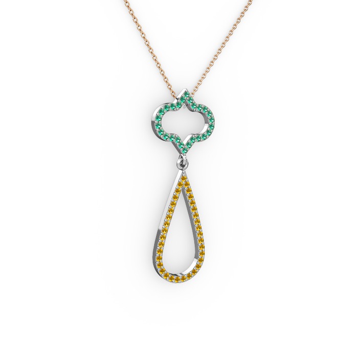 Yeşil kuvars ve sitrin 18 ayar beyaz altın kolye (40 cm gümüş rolo zincir)