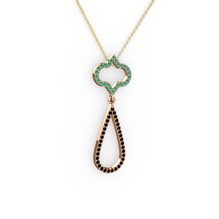 Yeşil kuvars ve siyah zirkon 18 ayar rose altın kolye (40 cm altın rolo zincir)