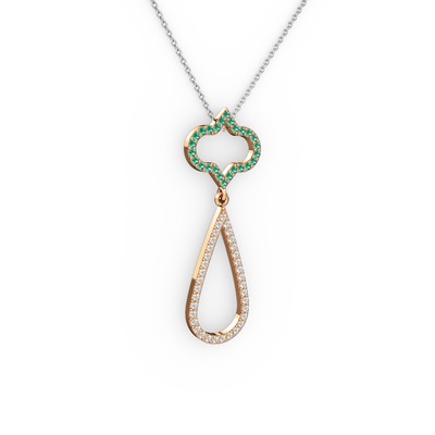 Yeşil kuvars ve swarovski 8 ayar rose altın kolye (40 cm gümüş rolo zincir)