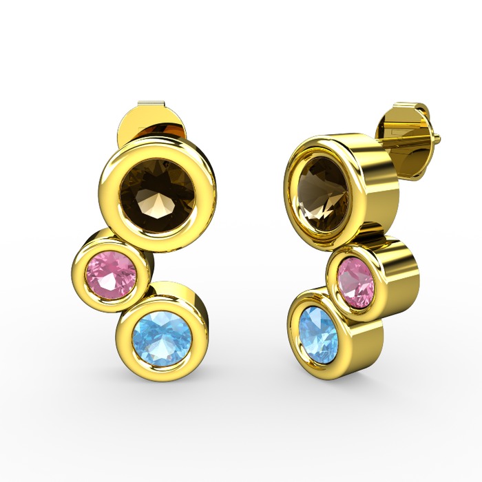 Akuamarin, dumanlı kuvars ve pembe kuvars 925 ayar altın kaplama gümüş küpe