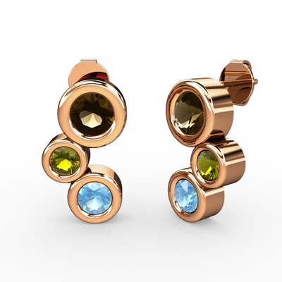 Akuamarin, dumanlı kuvars ve peridot 14 ayar rose altın küpe