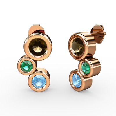 Akuamarin, dumanlı kuvars ve yeşil kuvars 8 ayar rose altın küpe