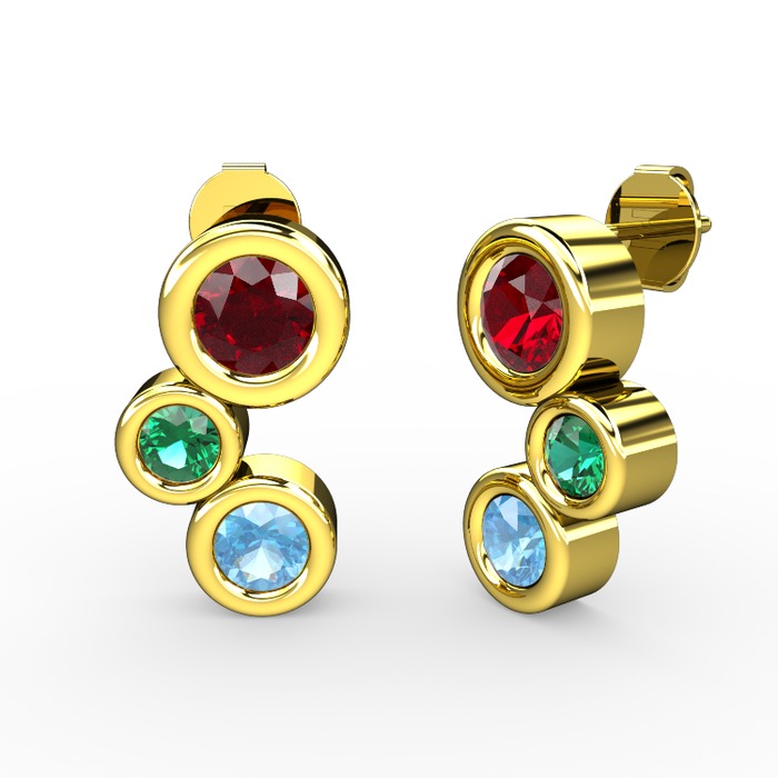 Akuamarin, garnet ve yeşil kuvars 8 ayar altın küpe