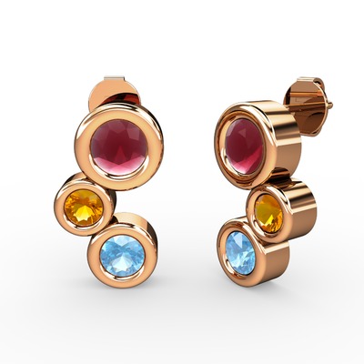 Akuamarin, kök yakut ve sitrin 8 ayar rose altın küpe