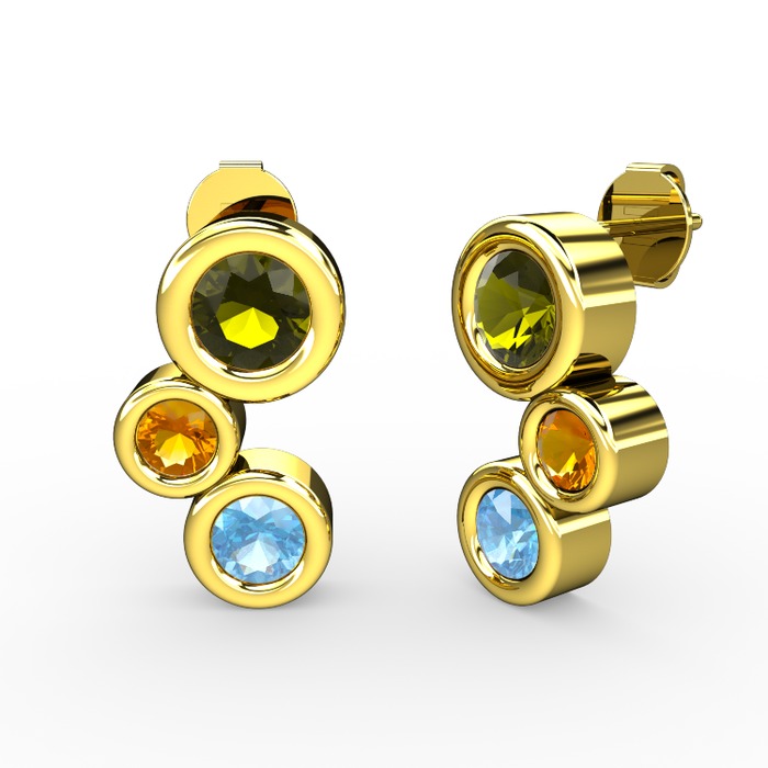 Akuamarin, peridot ve sitrin 8 ayar altın küpe